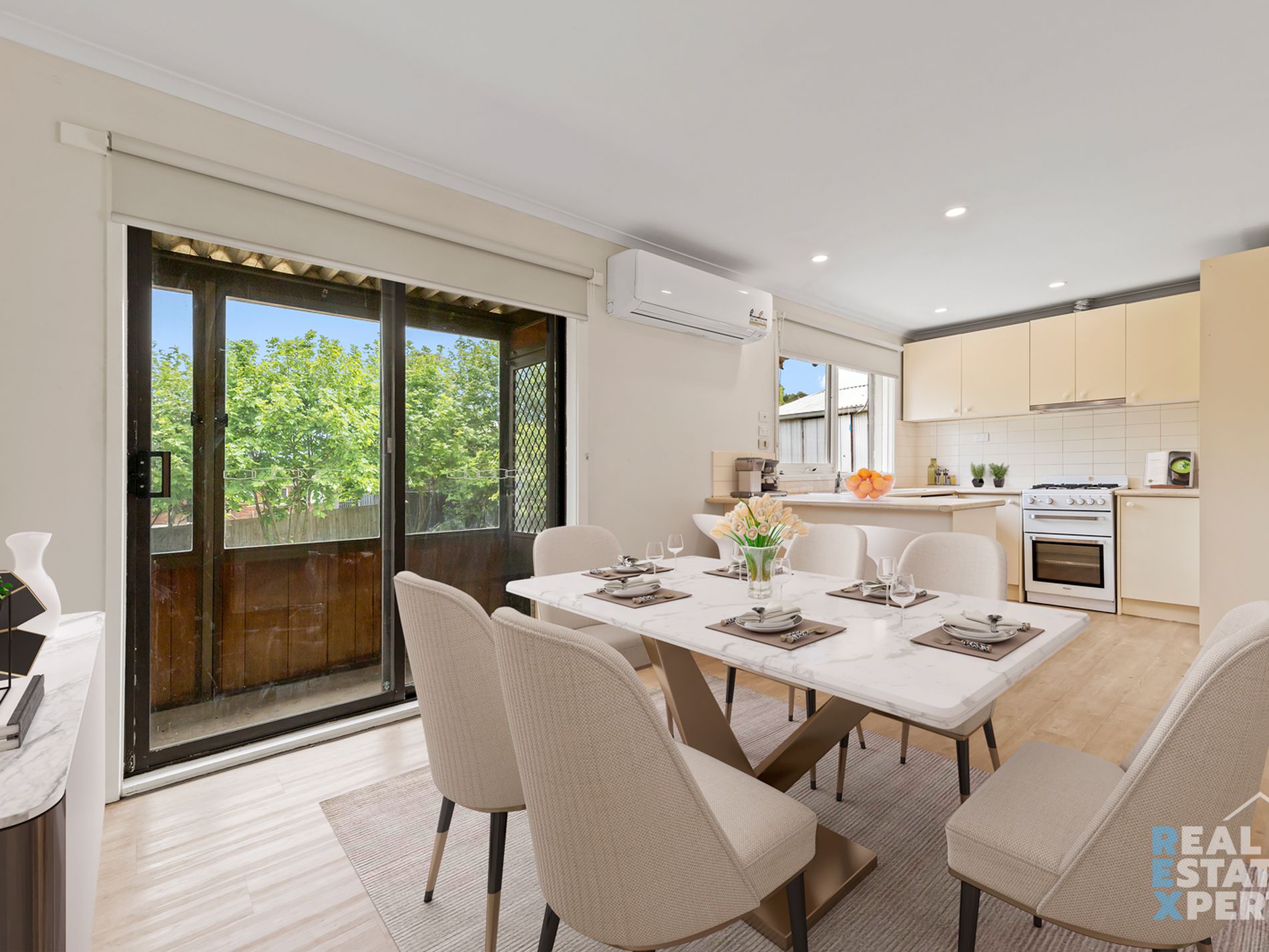 - Light-filled living and dining areas