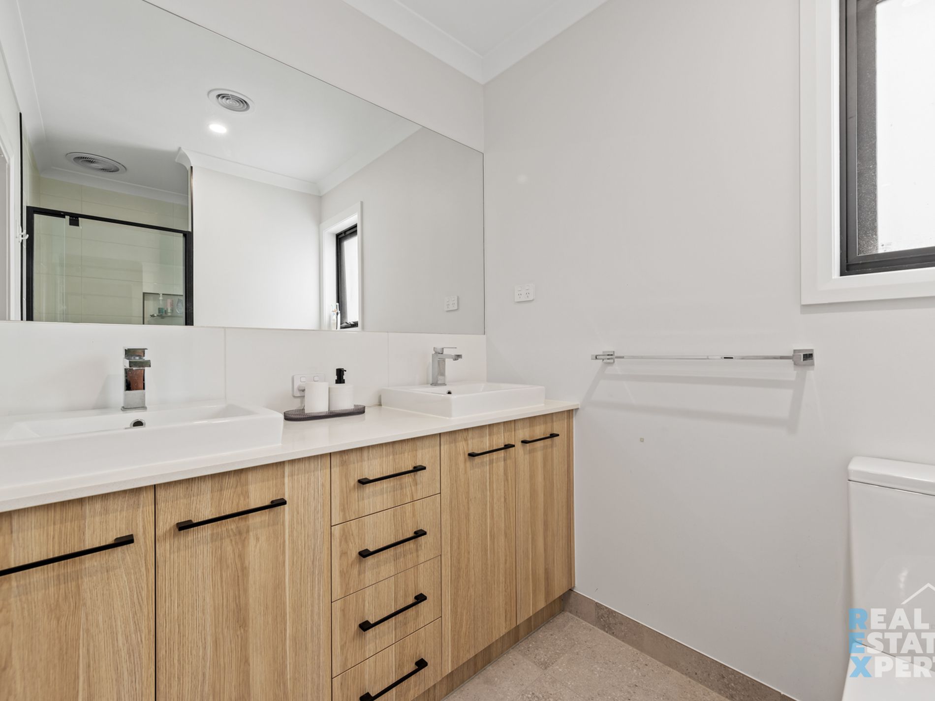 This impressive residence offers 3 generous bedrooms, including a master suite complete with walk in robe and double vanity ensuite, secondary bedrooms with mirrored robes and 2 stylish bathrooms. At the front of the home, a formal lounge provides exceptional versatility—perfect as a home office, second living area, or potential fourth bedroom to suit your lifestyle needs.