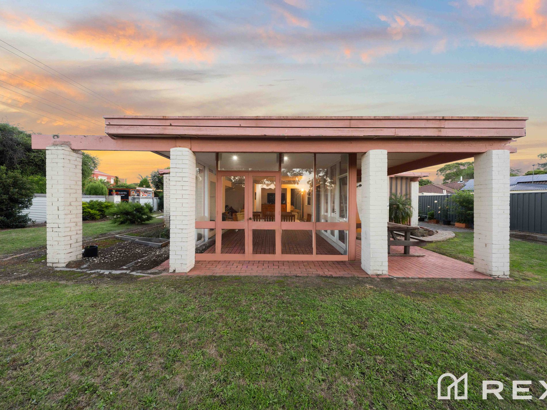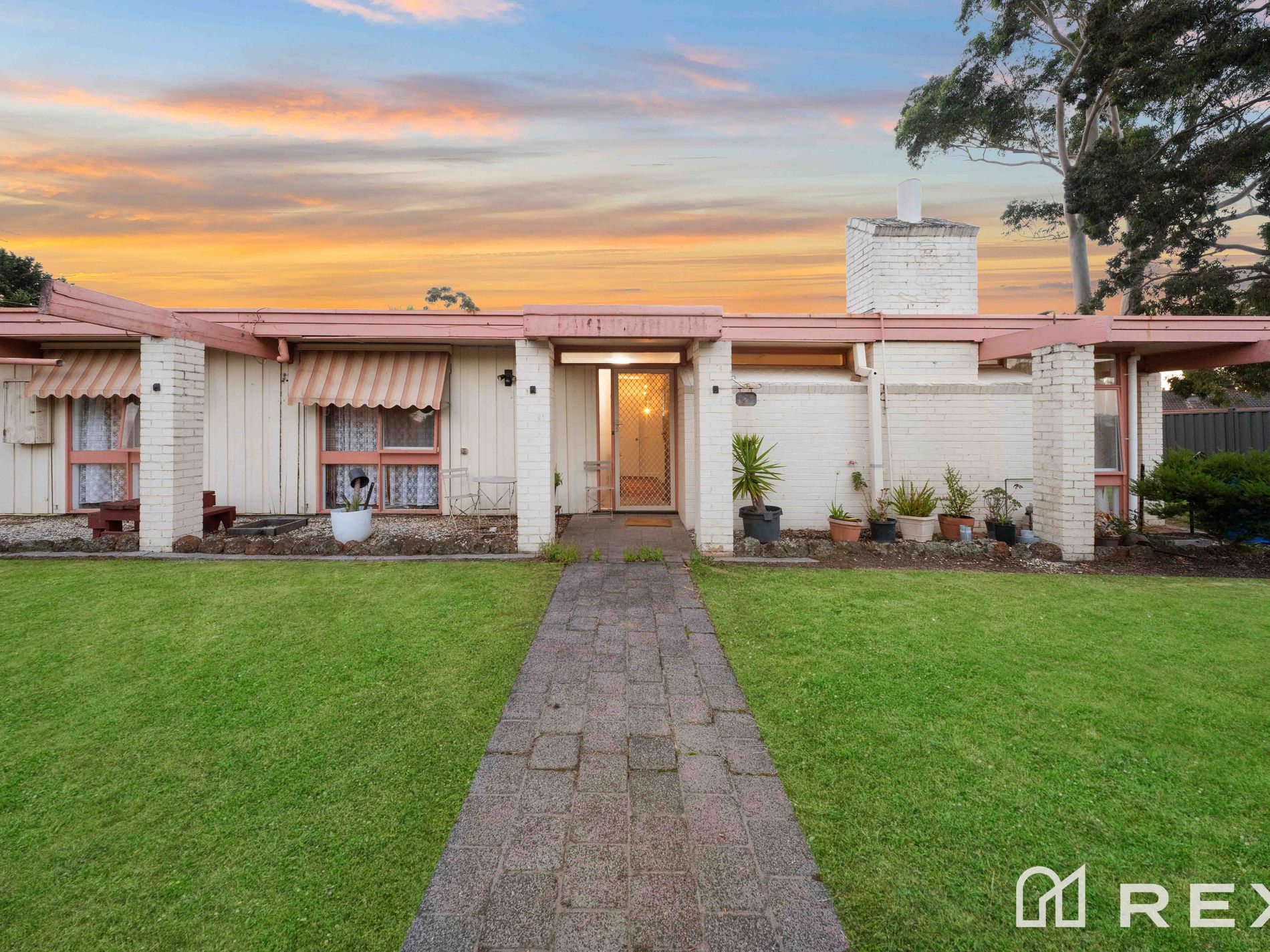 From the street, the home immediately stands out with its distinctive retro-minimalist design, combining brick veneer and cladding with symmetrical architectural lines. The crisp white façade, accented with sunset peach tones, delivers a unique charm, while the low-maintenance landscaping and secure double lock-up garage complete the picture.