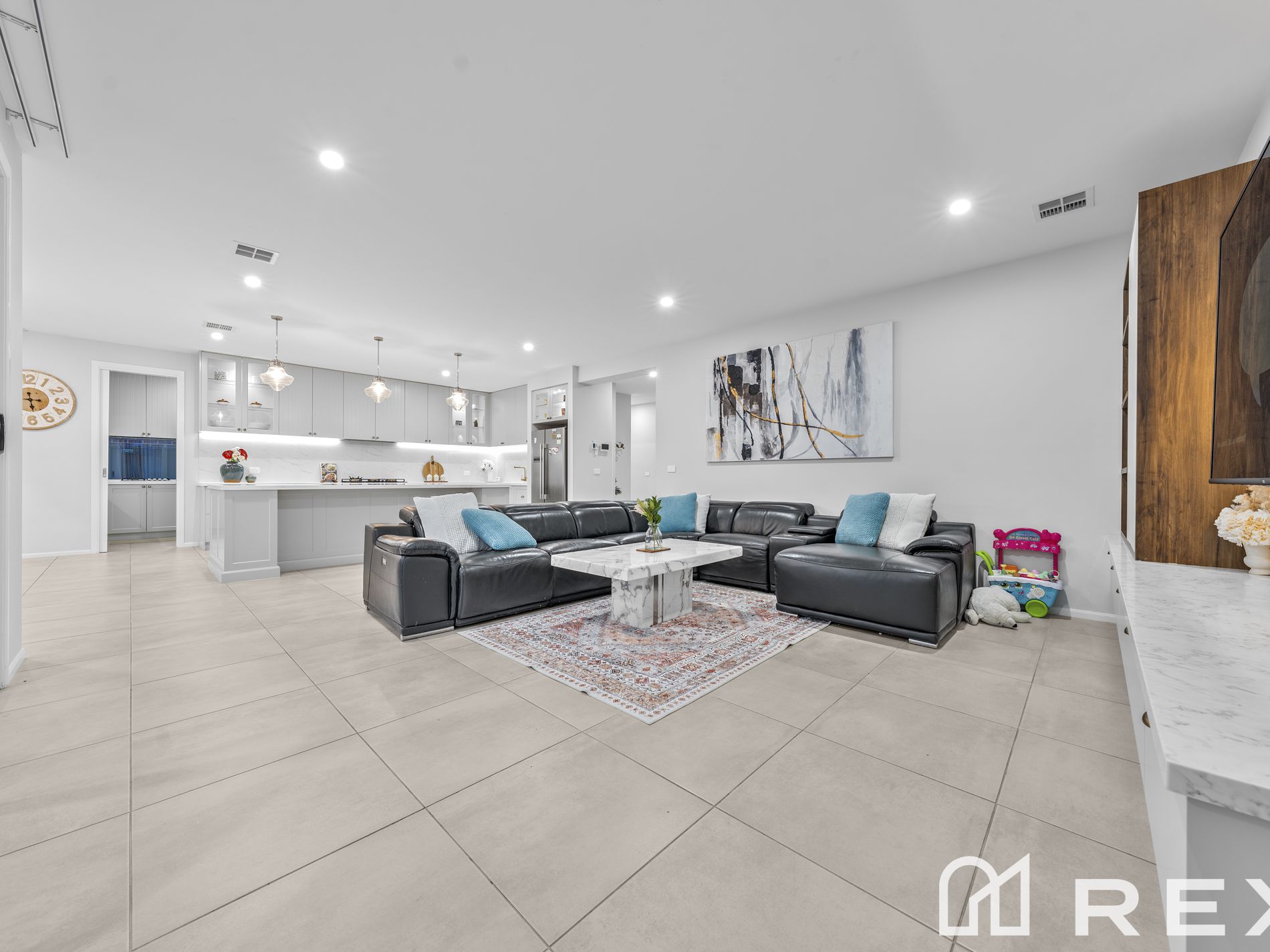The heart of the home features a spacious open-plan kitchen, designed for both everyday living and entertaining. Complete with quality appliances, ample storage, and a seamless connection to the multiple living zones, this space is perfect for bringing family and friends together.